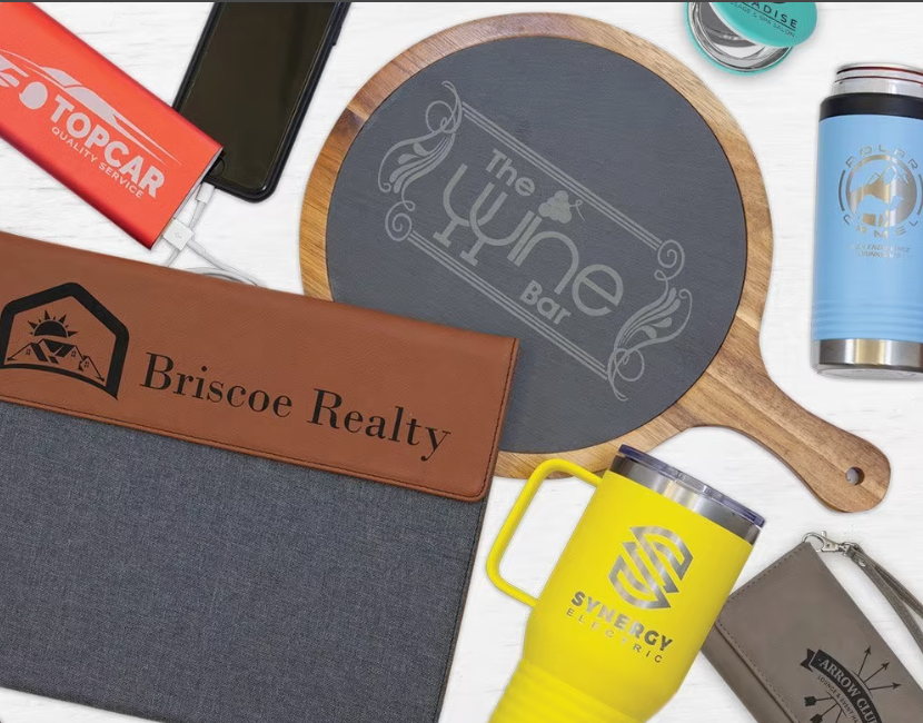 Corporate and personal gifts. Elevate your gift-giving game with our range of tumblers, cutting boards, coasters, and keychains that scream personality!