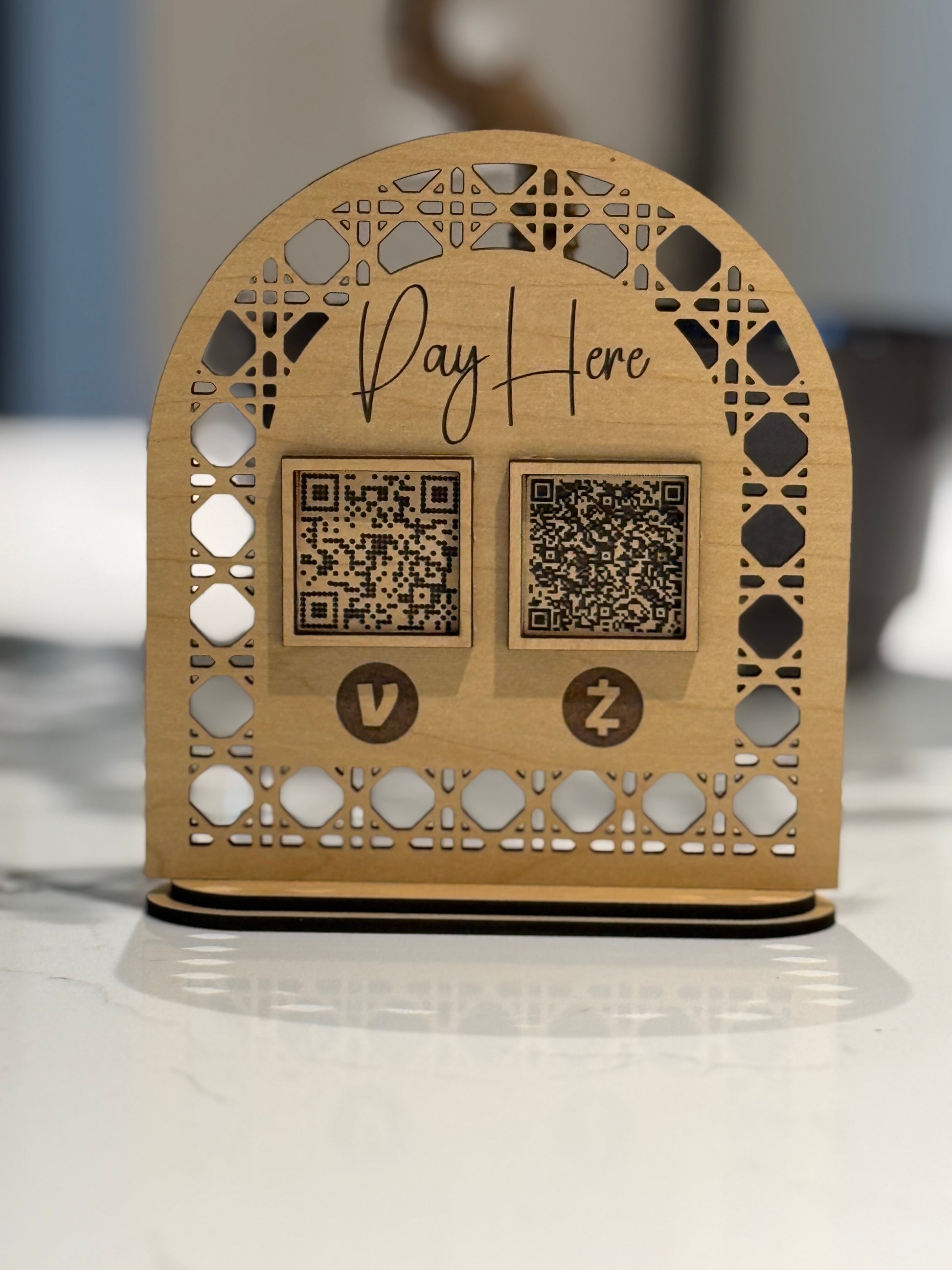 All Acrylic Signs, are made custom order, with high quality acrylic materials. Qr codes are printed on a high quality vinyl, printed with Eco-solvent ink, that makes this print water proof and weather resistant. As well as easy to change, and replace in case you need to update your social media links and or Business.