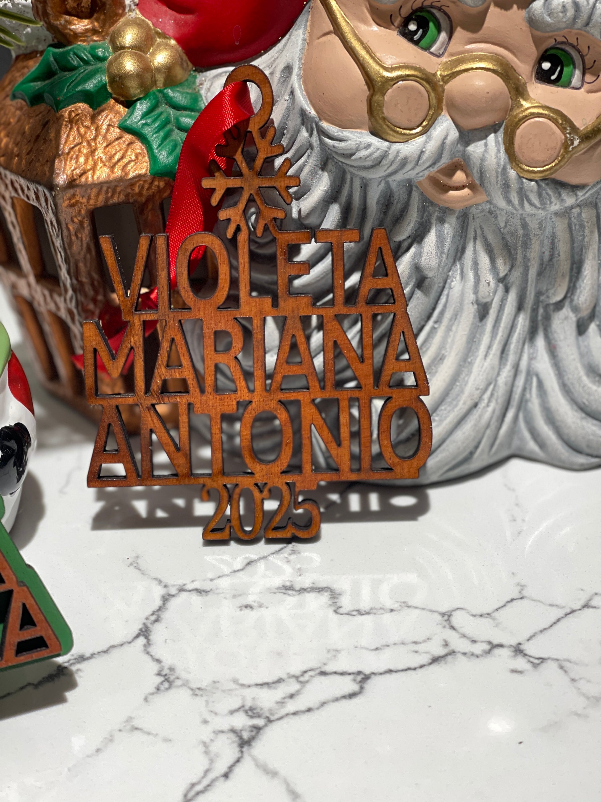 The current year will be added to the bottom of the ornament. If you want a different year, please make sure to mention it in the notes for your order under the names.