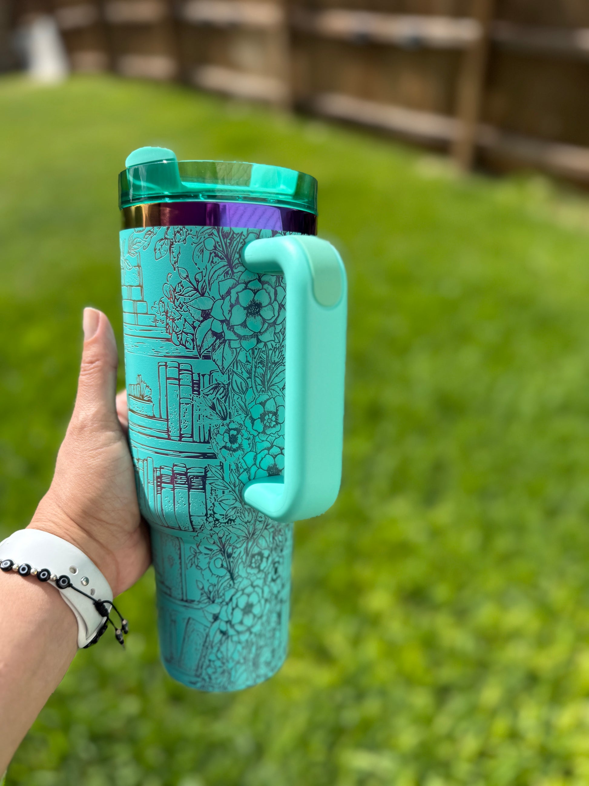 Enjoy your favorite beverages in style with the "Reading is Dreaming with Your Eyes Open" 40 oz Quencher Rainbow Plated Tumbler. Designed for durability and vibrant aesthetics, this tumbler keeps drinks at the ideal temperature while showcasing a colorful, eye-catching finish. Perfect for book lovers who appreciate both function and flair, it offers ample capacity for hydration during long reading sessions or daily adventures.
