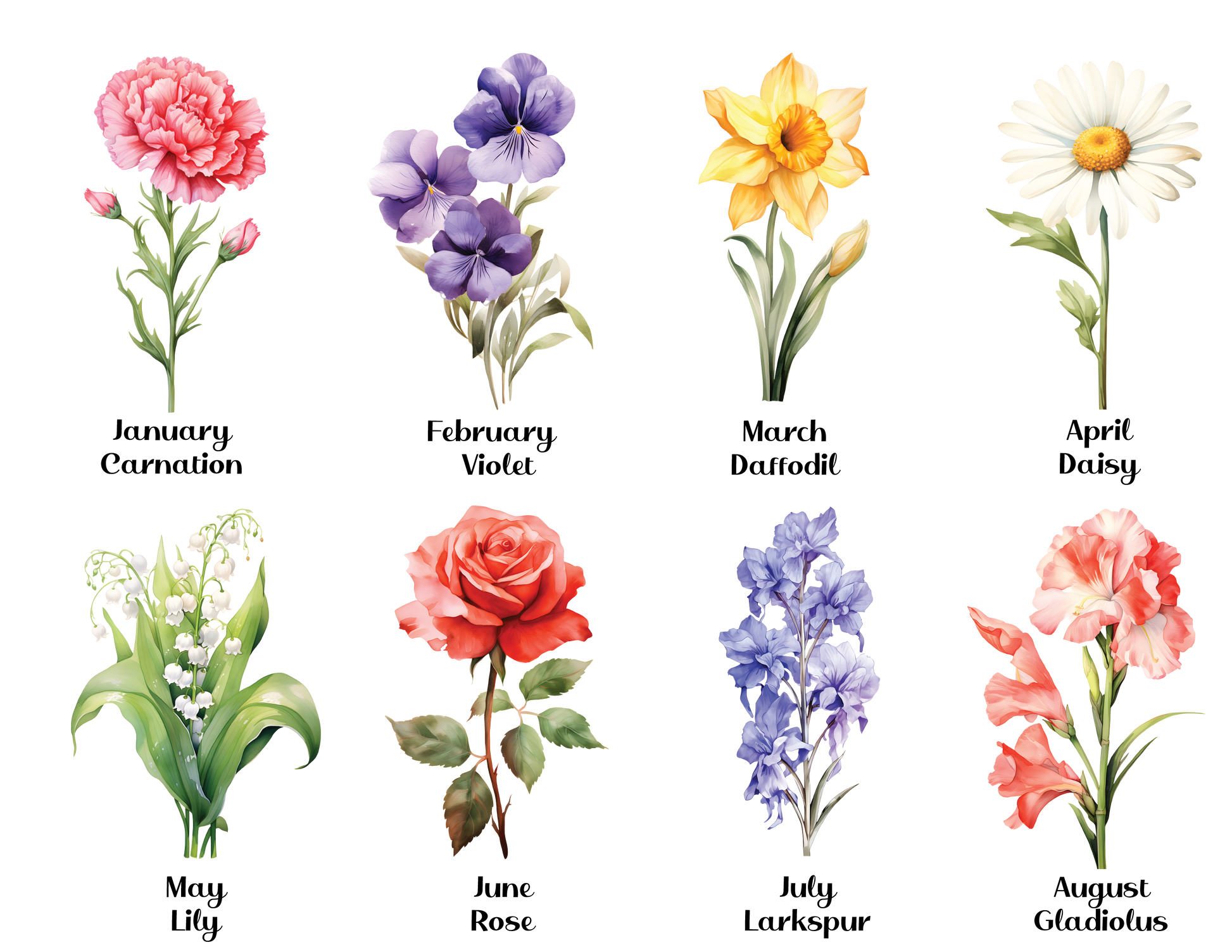 Personalized Tote bag with your birth flower month and name on a 11 x 14 size tote bag