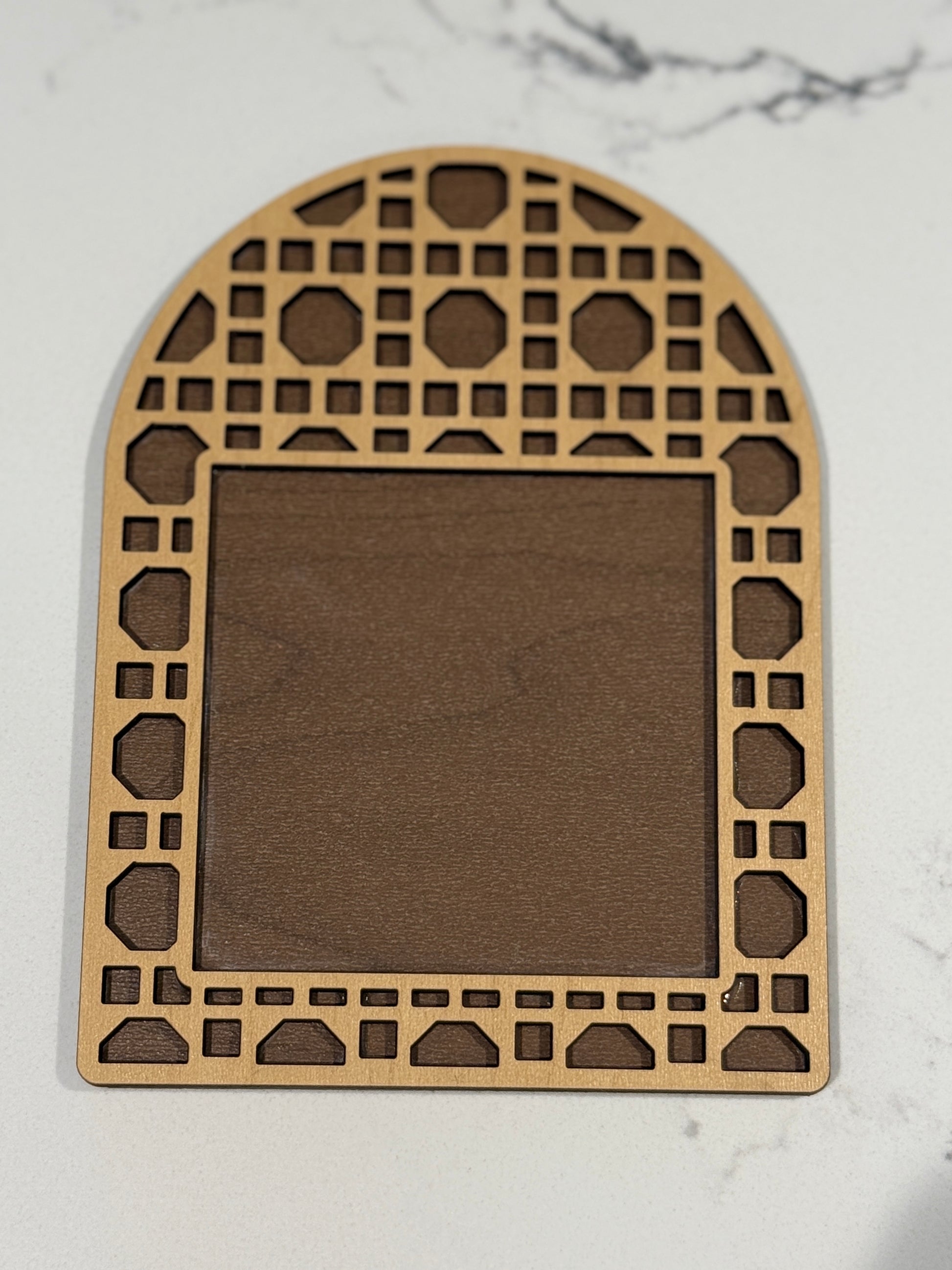 The actual thickness of the products may vary slightly from the stated value. The acrylic is approximately 1/8 inch thick, while the wood is approximately 1/4 inch thick.