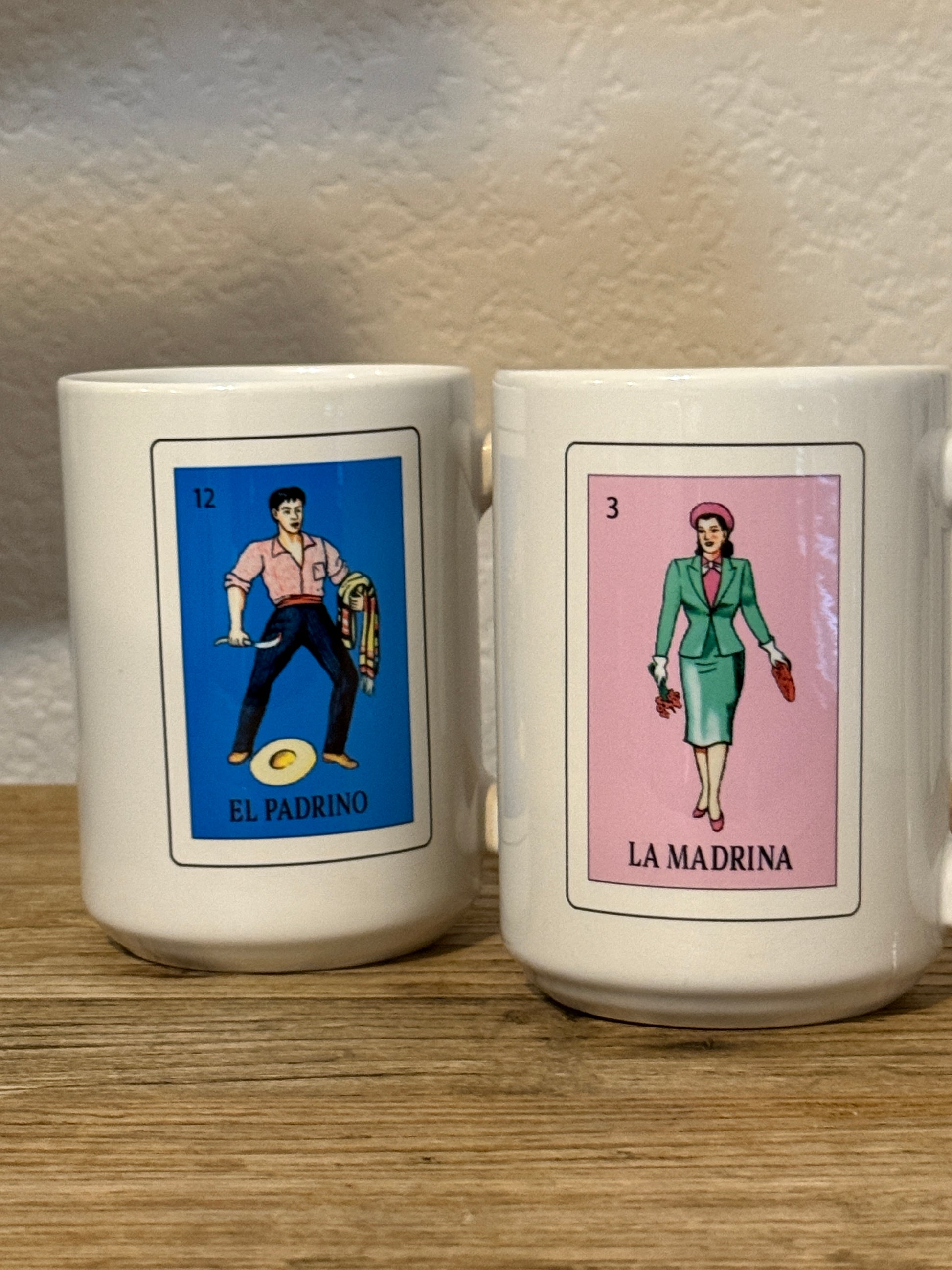 Introducing our Loteria El Padrino, la Madrina mugs set, perfect for your morning coffee routine!
